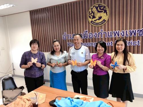 การจัดกิจกรรมครั้งนี้ เพื่อสนับสนุนการออกร้านงานกาชาดของสมาคมแม่บ้านมหาดไทย ประจำปี 2568 โดยประดิษฐ์ผีเสื้อจากผ้าไทยประจำถิ่นของจังหวัด อาทิ สีศิลาแลง ลายผ้าศิลาล้อมเพชร สีประจำจังหวัดกำแพงเพชร โดยได้รับความร่วมมือจากสำนักงานพัฒนาชุมชนอำเภอ และภาคีเครือข่ายในพื้นที่มาร่วมกันประดิษฐ์ผีเสื้อจากผ้าไทยประจำถิ่นเพื่อสนับสนุนการออกร้านงานกาชาดของสมาคมแม่บ้านมหาดไทย ประจำปี 2568
