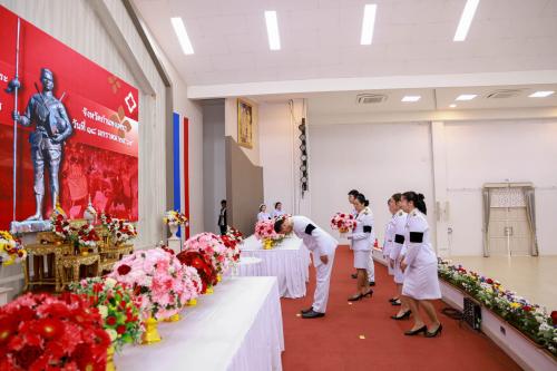 ในโอกาสนี้ ประธานในพิธีได้กล่าวคำถวายราชสดุดีเฉลิมพระเกียรติฯ เพื่อรำลึกถึงเหตุการณ์สำคัญเมื่อครั้งปีพุทธศักราช 2135 ที่สมเด็จพระนเรศวรมหาราชทรงกระทำยุทธหัตถีกับพระมหาอุปราชา ณ ดอนเจดีย์ แม้จะตกอยู่ในวงล้อมข้าศึกแต่ด้วยพระปรีชาสามารถและพระปฏิภาณไหวพริบ ทรงมีชัยชนะอย่างสมพระเกียรติ นำมาซึ่งเอกราชและความสงบสุขของผืนแผ่นดินไทยจวบจนปัจจุบัน