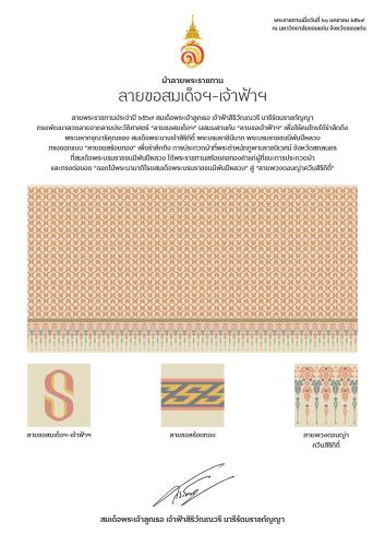 ลายพระราชทานประจำปี ๒๕๖๙ สมเด็จพระเจ้าลูกเธอ เจ้าฟ้าสิริวัณณวรี นารีรัตนราชกัญญา ทรงพัฒนาลวดลายจากลายประวัติศาสตร์ "ลายขอสมเด็จฯ" ผสมผสานกับ "ลายขอเจ้าฟ้าฯ" เพื่อให้คนไทยได้รำลึกถึงพระมหากรุณาธิคุณของ สมเด็จพระนางเจ้าสิริกิติ์ พระบรมราชินีนาถ พระบรมราชชนนีพันปีหลวง ทรงออกแบบ "ลายขอสร้อยทอง" เพื่อรำลึกถึง การประกวดผ้าที่พระตำหนักภูพานราชนิเวศน์ จังหวัดสกลนคร ที่สมเด็จพระบรมราชชนนีพ้นปีหลวง ได้พระราชทานสร้อยคอทองคำแก่ผู้ที่ชนะการประกวดผ้าและทรงต่อยอด "ดอกไม้พระนามาภิไรยสมเด็จพระบรมราชชนนีพันปีหลวง" สู่ "ลายพวงดอนญ่าควีนสิริกิติ์"